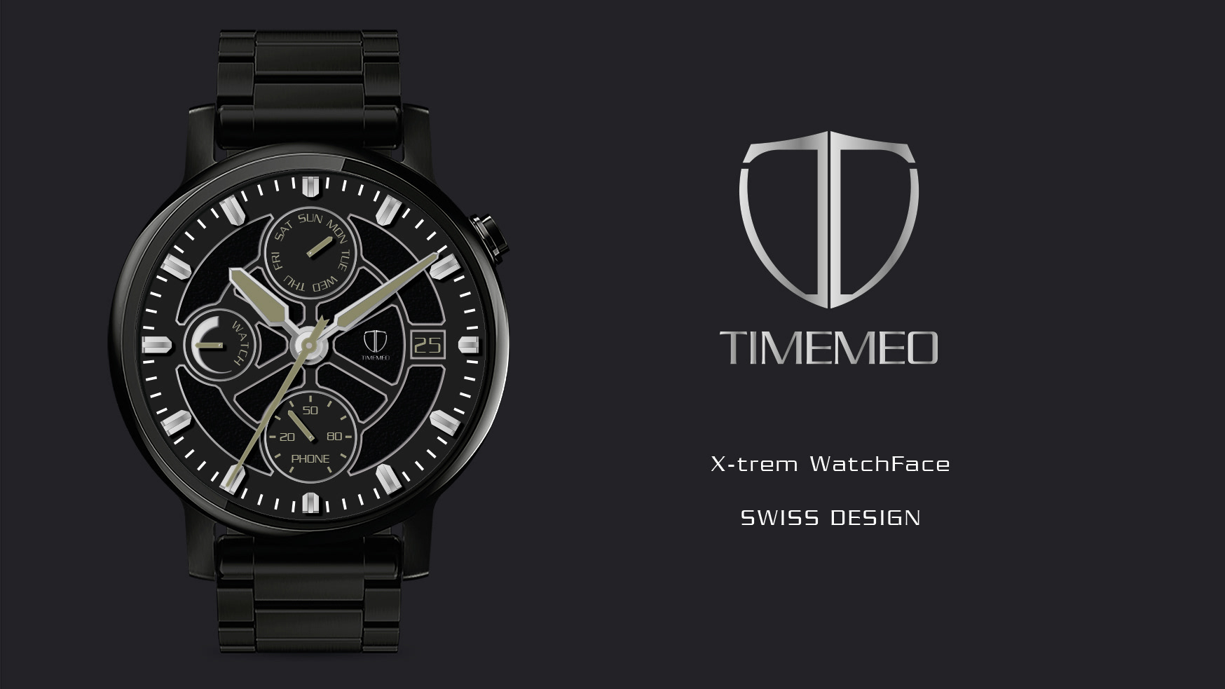 Watchface for Samsung connected watch Gear S2. Watchface for men, in gold or black edition.